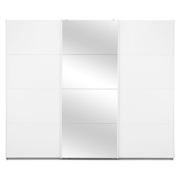 Dulap 3 usi glisante, 9 polite si casetiera incluse Alysia. Dulapul din gama Alysia este alegerea perfecta pentru un dormitor in care predomina stilul modern. Piesa de mobilier este prevazuta cu numeroase spatii pentru depozitare si este generos compartimentata. Dulapul are 3 usi glisante, dintre care una cu oglinda, care permite plasarea acestuia chiar si in imediata vecinatate a patului. De asemenea, este deosebit de versatil si poate completa cu mult bun gust camera voastra. Greutate maxima admisa pentru bara de haine: 40 kg. Greutate maxima admisa pentru polite: 10 kg. Citeste mai multe despre intretinere.