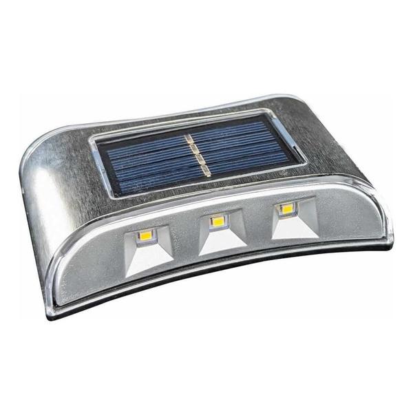 Corp de iluminat solar practica. Potrivit ca sursa de iluminat de orientare pentru zonele exterioare (pereti, fatade). Cipurile LED distribuite reversibil permit iluminarea in directia superioara si inferioara. Produsul are grad de protectie IP44, care asigura protectie impotriva stropilor de apa. Datorita intensitatii reduse a luminii, produsul are rol decorativ. Intrerupatorul este pozitionat pe partea din spate a produsului. Alimentarea cu energie are loc printr-un panou solar. Se porneste automat la lasarea intunericului. Timp de incarcare: max. 8 ore. Culoarea luminii: alb natural. Acumulator: Ni-Mh 600 mAh 1,2 V (inclus).
