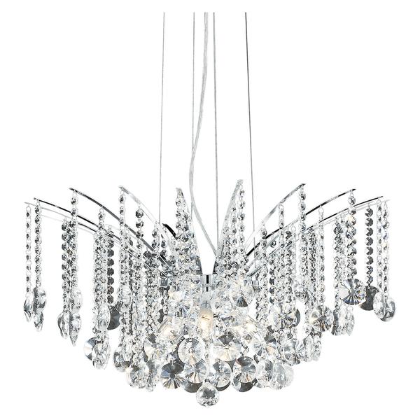 Informatii generale Tip articol Lustra Dimensiuni O.65 x H.36-110 cm Numar surse de lumina 8 buc. - tip soclu G9 (max. 40W) - becul nu este inclus Clasa energetica A++, A+, A, B, C, D, E Material baza Metal Culoare baza Argintiu Baza Material Metal Culoare Argintiu Finisaj Lucios Ornament Ornament inclus Da, cristal transparent