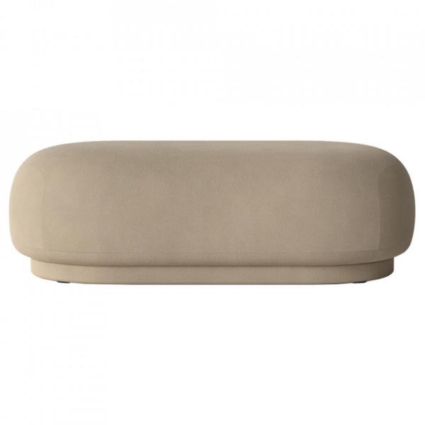 Descriere Bancheta bej nisipiu din poliester si lemn 124 cm Rico Brushed Ferm Living Dimensiuni: \- Lungime: 124 cm \- Latime: 69 cm \- Inaltime: 41 cm Material: \- Structura: lemn si metal \- Picioare: polietilena \- Tapiterie: 100% poliester \- Umplutura: spuma Seria Rico saluta curbele si volumul intr- un design clasic definit de linii moi si de o expresie cuprinzatoare. Este o piesa de mobilier multifunctionala, perfecta pentru orice ansamblu, fie ca aveti nevoie de o masuta laterala, de un suport pentru picioare sau de un scaun spatial in camera de zi. Natura curbata a seriei adauga o uniune moderna de confort si eleganta oricarei incaperi si te face sa te simti atras in imbratisarea sa materna.