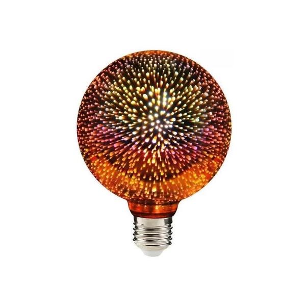 Bec LED decorativ cu soclu E27. Creeaza efecte de iluminare 3D. Pe timp de noapte, atunci cand este pornit, creeaza un efect de „foc de artificii”.