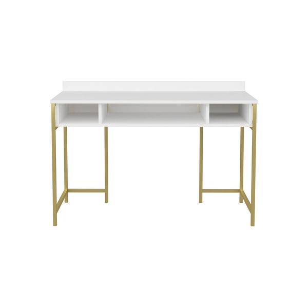 INFORMATII PRODUS Categorie Birou Greutate 33 kg Material blat PAL melaminat Material cadru PAL melaminat Culoare blat alb Culoare cadru auriu Numar Usi N/A Numar sertare N/A Cu rafturi da Lungime 120...