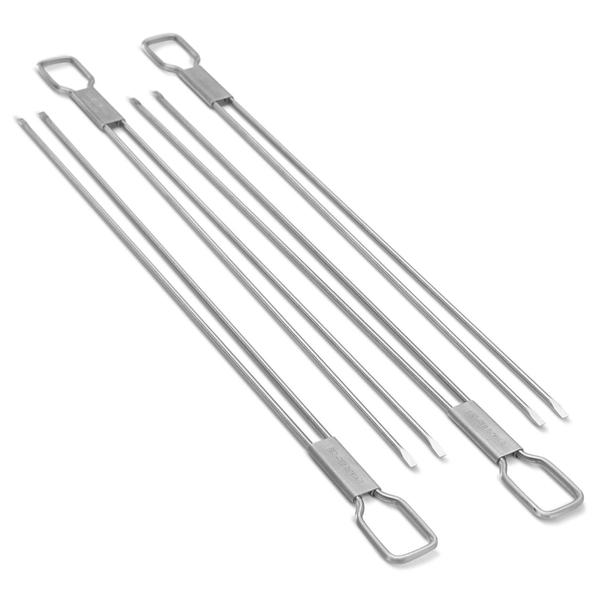 Set 4 tepuse pentru frigarui Broil King. Zilele calduroase sunt cel mai bine petrecute impreuna cu familia, la un gratar in aer liber. Pentru preparate delicioase, preferate de toti cei dragi, adaugati setului de ustensile un set de patru tepuse pentru frigarui, cu ajutorul carora sa gatiti carnea, legumele sau bezele, intr-o simfonie de gusturi care sa va incante. Material: inox. Culoare: argintiu. Producator: BROIL KING