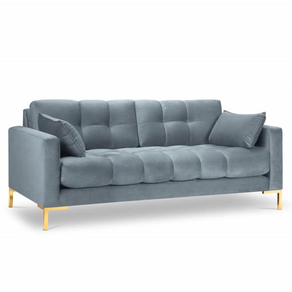 Descriere Canapea albastru deschis/aurie din catifea si lemn de pin pentru 2 persoane Mamaia Besolux Dimensiuni: \- Lungime: 152 cm \- Latime: 92 cm \- Inaltime: 75 cm \- Inaltime sezut: 41 cm \- Dime...