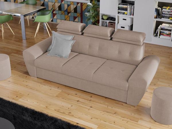 Canapea Barini Coral 50 Canapea Barini Coral 50 este o canapea cu design modern, cu forme rotunjite. Tetierele reglabile in mai multe trepte asigura confortul necesar in momentele de relaxare, sustinand capul exact in pozitia dorita. Picioarele argintii si butonii de pe sezut si de pe spatar confera eleganta acestei canapele cu trei locuri . Se transforma rapid si usor intr-un pat spatios de 185 x 130 cm . Este potrivita unei incaperi spatioase, avand dimensiunea de: 245 cm lungime, 100 cm latime, 95 cm inaltime totala. Este tapitata cu stofa de calitate pe diverse culori. Atentie: Pretul afisat nu include alte accesorii sau obiecte de decor. Taburetele, pernele deco si draperiile se pot achizitiona optional. Livrare gratuita si rapida, 4-10 zile lucratoare prin flota proprie Suntem producatori de tapiterii, fara intermediari Toate piesele de tapiterii au o garantie de 2 ani Videoclipul contine alta nuanta decat cea de pe pagina produsului, acesta avand ca scop prezentarea familiei pentru a se reda in detaliu aspectul materialului. Sezutul este din arcuri sinusoidale si poliuretan, iar extensia canapelei este din poliuretan High Resilience. Scheletul este rezistent, realizat pe structura solida de fag si pal. Extensia de tip sertar este pozitionata sub sezutul canapelei. Se deschide ca un sertar, apoi se ridica salteaua din interiorul acestuia. Canapea Barini Coral 50 se incadreaza cu usurinta in majoritatea locuintelor indiferent de stilul acestora. Puteti alege din mai multe culori pentru stofa. Produsele disponibile le puteti vedea aici Modele Barini .