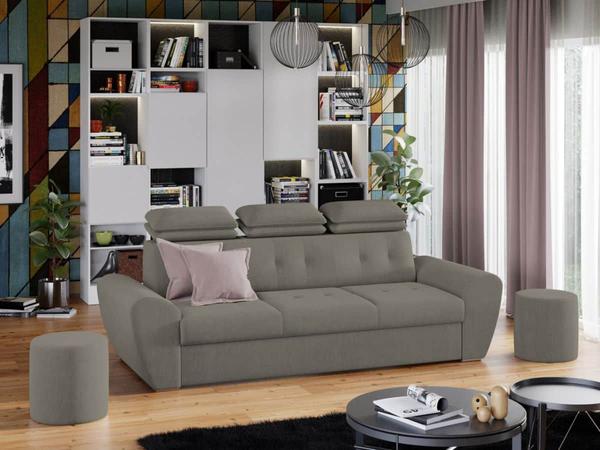 Canapea Barini Harmony 85 Canapea Barini Harmony 85 este o canapea cu design modern, cu forme rotunjite. Tetierele reglabile in mai multe trepte asigura confortul necesar in momentele de relaxare, sustinand capul exact in pozitia dorita. Picioarele argintii si butonii de pe sezut si de pe spatar confera eleganta acestei canapele cu trei locuri . Se transforma rapid si usor intr-un pat spatios de 185 x 130 cm . Este potrivita unei incaperi spatioase, avand dimensiunea de: 245 cm lungime, 100 cm latime, 95 cm inaltime totala. Este tapitata cu stofa de calitate pe diverse culori. Atentie: Pretul afisat nu include alte accesorii sau obiecte de decor. Taburetele, pernele deco si draperiile se pot achizitiona optional. Livrare gratuita si rapida, 4-10 zile lucratoare prin flota proprie Suntem producatori de tapiterii, fara intermediari Toate piesele de tapiterii au o garantie de 2 ani Videoclipul contine alta nuanta decat cea de pe pagina produsului, acesta avand ca scop prezentarea familiei pentru a se reda in detaliu aspectul materialului. Sezutul este din arcuri sinusoidale si poliuretan, iar extensia canapelei este din poliuretan High Resilience. Scheletul este rezistent, realizat pe structura solida de fag si pal. Extensia de tip sertar este pozitionata sub sezutul canapelei. Se deschide ca un sertar, apoi se ridica salteaua din interiorul acestuia. Canapea Barini Harmony 85 se incadreaza cu usurinta in majoritatea locuintelor indiferent de stilul acestora. Puteti alege din mai multe culori pentru stofa. Produsele disponibile le puteti vedea aici Modele Barini .