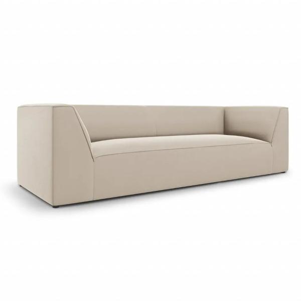 Descriere Canapea bej din catifea si lemn de pin pentru 3 persoane Ruby Besolux Dimensiuni: \- Lungime: 232 cm \- Latime: 92 cm \- Inaltime: 69 cm \- Inaltime sezut: 40 cm \- Dimensiuni sezut: 69x180...
