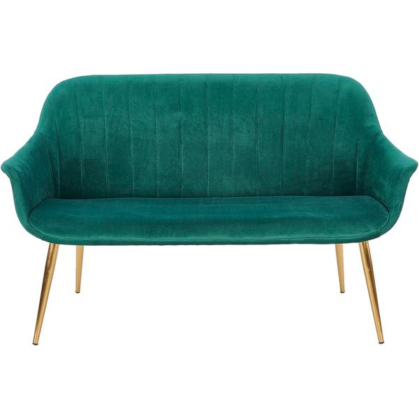 INFORMATII PRODUS Categorie Canapele Greutate 23 kg Material stofa, metal Culoare verde inchis, auriu Lungime 132 cm Adancime 62 cm Inaltime 78 cm Inaltime sezut 41 cm Numar persoane 2 Extensibila nu...