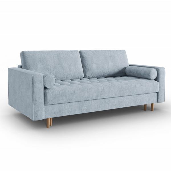 Descriere Canapea extensibila albastra/maro din textil si lemn de pin pentru 3 persoane Gobi Besolux Dimenisuni: \- Lungime: 225 cm \- Latime: 100 cm \- Inaltime: 96 cm \- Inaltime sezut: 49 cm \- Ina...