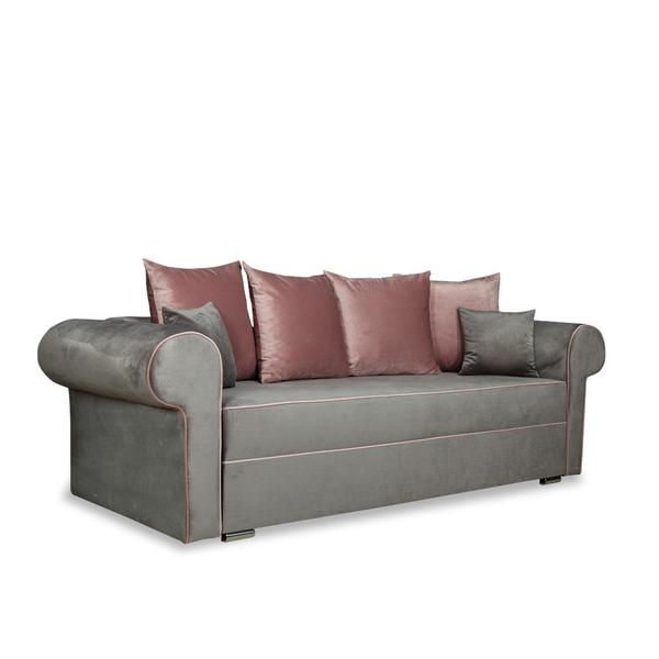 Inaltime 75 cm Latime 250 cm Lungime 105 cm Culoare gri argintiu multicolor roz Tapiterie stofa Tip produs canapea extensibila cu lada Material pal spuma poliuretanica