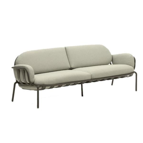 Descriere Canapea exterior verde/crem din material textil si metal pentru 3 persoane Joncols Kave Home Dimensiuni sezut: 50x165 cm Sarcina maxima: 300 kg Material: 35% aluminiu, 35% spuma poliuretanic...