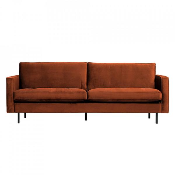 Descriere Canapea maro ruginie din catifea pentru 2,5 persoane Rodeo BePureHome Dimensiuni: \- Lungime: 230 cm \- Latime: 88 cm \- Inaltime: 83 cm \- Inaltime sezut: 47 cm \- Dimensiuni sezut: 58x206 cm \- Inaltime cotiere: 70 cm Material: \- Structura si picioare: lemn masiv si placaj \- Tapiterie: 100% catifea din poliester \- Umplutura: 70% spuma si 30% silicon Seria Rodeo, produsa de brandul olandez de decoratiuni interioare BePureHome, este moderna, robusta si contemporana. Rodeo sunt spatioase si ofera un confort de sedere minunat de ferm. Cadrul cu picioare inalte face ca mobilierul sa para subtire si aerisit. Rodeo este cunoscuta pentru combinatia sa atemporala de culori si materiale, inspirata din anii '50 si careia i s-a dat un twist modern. Indrazniti sa mergeti la Rodeo!