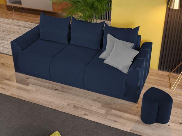 Canapea Nova Albastra Canapea Nova Albastra are un aspect aparte dat de liniile curbate de la sezut, brate si modelul pernelor. Spatarul are 3 perne detasabile cu 2 fete, o fata cu model si una in culoare uni. Canapeaua se transforma rapid si usor intr-un pat spatios de 190 x 140 cm atunci cand scoti pernele si tragi sezutul in exterior coborand spatarul. Bratele si sezutul sunt rotunjite conferind un suport anatomic pentru maini si picioare. Te poti aseza astfel incat sa te simti bine si relaxat timp de multe ore, gratie pernelor detasabile pentru spatar, care ofera sustinere corpului tau exact in pozitia dorita. Aceasta are dimensiunea de: 235 cm lungime, 106 cm latime, 87 cm inaltime totala . Este tapitata cu stofa de calitate pe diverse culori. Atentie: Pretul afisat nu include alte accesorii sau obiecte de decor. Taburetele, pernele deco si draperiile se pot achizitiona optional. Livrare gratuita si rapida, 4-10 zile lucratoare prin flota proprie Suntem producatori de tapiterii, fara intermediari Toate piesele de tapiterii au o garantie de 2 ani Sezutul si extensia canapelei sunt pe relaxa (arcuri elicoidale si poliuretan) . Scheletul este rezistent, realizat pe structura solida de fag si pal. Extensia este de tip Doppelliege, ce prezinta un sistem actionat prin role, astfel ca partea de sezut se trage si permite partii de spatar sa gliseze spre partea din fata si sa se pozitioneze orizontal. Canapea Nova Albastra se incadreaza cu usurinta in majoritatea locuintelor indiferent de stilul acestora. Puteti alege din mai multe culori pentru stofa. Produsele disponibile le puteti vedea aici Modele Nova .