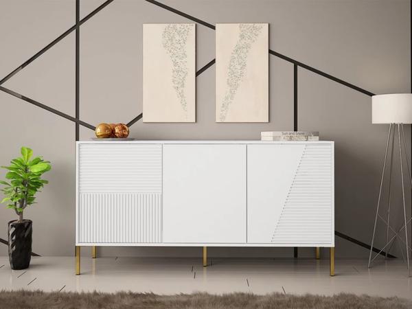 Comoda lata 160 Miretiz 03 este un accesoriu deosebit de frumos pentru hol, living si dormitor. Designul ei deosebit ii va incanta pe toti. Picioare delicate, ornamente frezate, culori atemporale – toti doresc sa le aiba! Cauti ceva, unde sa incapa toate hainele, accesoriile si bibelourile? Ai nimerit bine! Modelul ofera un spatiu generos de depozitare. Comoda pe picioare a fost dotata cu sase compartimente incapatoare! Cu ajutorul ei, organizarea perfecta nu iti va fi straina! Comoda 160 are si un aspect stralucitor! Te vei indragosti de la prima vedere! Ornamentele delicate confera acestei variante prospetime si originalitate. Datorita blatului cu suprafata mare, ai numeroase posibilitati de amenajare. Creeaza expunerea visata. Ornamente, flori. Tablouri sau poate rame foto? Ai un camp generos de manevra, pe care ti-l lasam la dispozitie. Cu ajutorul comodei Miretiz 03 castigi un interior stilat, asa cum ai visat! Dimensiuni : latime: 160 cm, inaltime: 83 cm, adancime: 40 cm Detalii produs: corp: placa laminata cu o grosime de 16 mm, fronturi: placa MDF cu o grosime de 18 mm, margini PVC, picioare metalice de culoare auriu (culoare alb si negru), picioare metalice de culoare negru (culoare cashmere), balamale cutie, lipsa manere, deschise prin sistemul "PUSH TO OPEN". Garantie: 24 luni