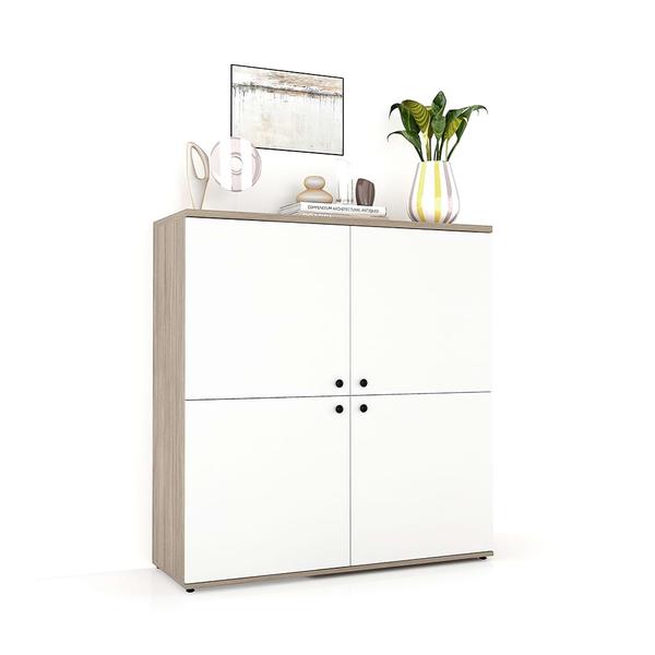 Comoda living CUBO 120, 4U, Clasic, Oak, Alb ofera un design modern si minimalist. Comoda este realizata din PAL de grosime 16 si 25mm din Oak (stejar) si Alb, un element modular de mobilier de living...
