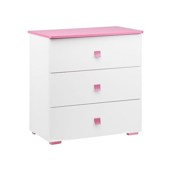 O comoda potrivita pentru depozitarea lucrurilor. Avand un stil simplu si modern, produsul se potriveste in orice locuinta. Constructia solida cu peretele posterior cu intarire speciala si placa puternica cu rezistenta sporita fac din comoda o piesa de mobilier durabila si sigura. Gratie rulmentilor cu bile, sertarele aluneca lin si silentios. Spatiul de depozitare bine gandit face posibila mentinerea ordinii si curateniei in camera copiilor – plina de jucarii, haine, carti si multe obiecte mici. Manerele practice, cu o forma geometrica decorativa, faciliteaza utilizarea zilnica a comodei de catre copii. Marginile speciale din ABS si muchia de pe margini protejeaza copilul de rani, de exemplu, atunci cand se loveste de mobilier. Este o solutie excelenta atat pentru fete, cat si pentru baieti, indiferent ca sunt mai mici sau mai mari. Fabricata din PAL melaminat de 18 mm grosime. Produsele noastre sunt fabricate din laminat de inalta calitate, care garanteaza o durata indelungata de viata si o rezistenta ridicata. Datorita caracterului natural al acestui material, pot aparea mici diferente de culoare, conferind fiecarei piese un aspect unic. Produsele noastre sunt fabricate din PAL de inalta calitate, care combina rezistenta si stabilitatea. Acest material poate prezenta usoare diferente de culoare, subliniind aspectul sau natural si unicitatea fiecarui produs.