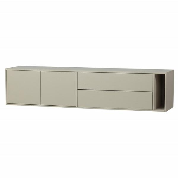 Descriere Comoda TV gri din lemn de pin 200 cm Settle Woood Dimensiuni: \- Compartiment deschis de capacitate cu gaura pentru cablu: H 40 cm x L 80 cm x P 43 cm - Continut 2x sertar: H 20 cm x L 80 cm x P 40 cm - Capacitate compartiment deschis: H 40 cm x L 12 cm x P 44 cm - Capacitate raft superior: 50 kg - Greutate de incarcare per raft: 15 kg - Greutate de incarcare per sertar: 15 kg Material: lemn de pin certificat FSC Comoda TV Settle este o piesa eleganta din colectia brandului olandez de design interior WOOOD. Cu combinatia sa de usi, sertare si un compartiment deschis, mobilierul Settle este usor de aranjat dupa cum se doreste. Cablurile si cablurile nu sunt la vedere, iar LP-urile preferate in compartimentul deschis ingust.