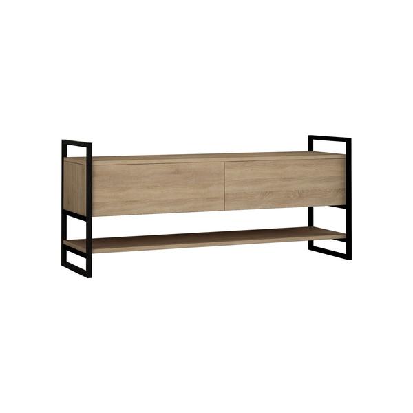 INFORMATII PRODUS Categorie Comode Tip comoda TV Material PAL melaminat, metal Culoare stejar, negru Lungime 131 cm Adancime 39 cm Inaltime 58 cm Sistem N/A Picioare da Tip (usi, sertare, rafturi) cu...