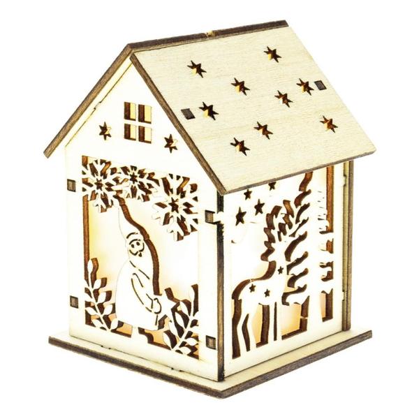 Decoratiune de Craciun din lemn cu LED pentru locuinta. Numar de leduri: 1. Culoare: bej. Culoarea luminii: alb cald. Sursa de alimentare: 2 baterii tip LR44 (incluse). Produsele noastre sunt fabricate din PAL de inalta calitate, care combina rezistenta si stabilitatea. Acest material poate prezenta usoare diferente de culoare, subliniind aspectul sau natural si unicitatea fiecarui produs.