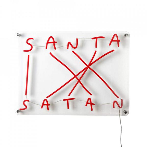 Descriere Decoratiune luminoasa din plastic acrilic Santa Satan Seletti Dimensiuni: - Lungime: 52 cm - Inaltime: 38 cm Material: silicon, plastic acrilic Lungime cablu: 3 m AC 100 - 240 V DC 12V, 60W 50-60 Hz Visul-Merda, Rezist-Sora si Mos-Satan sunt unirea si lupta dintre opuse. O reflectie asupra cotidianului transpusa intr-o lampa LED inedita.