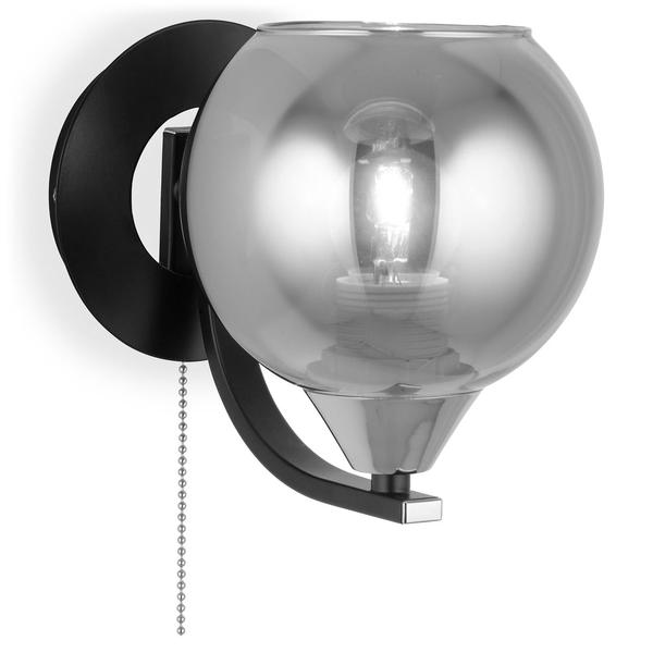 Informatii generale Tip articol Aplica Dimensiuni L.16 x l.14 x H.23 cm Culoare Negru, Gri Material Metal, Sticla Numar surse de lumina 1 buc. - tip soclu E27 (max. 60W) - becul nu este inclus Baza Material Metal Culoare Negru Finisaj Mat Abajur Material Sticla Culoare Gri