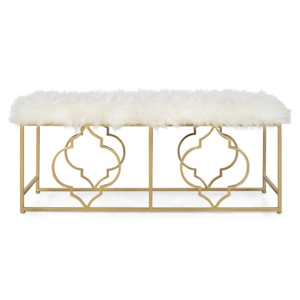 Informatii generale Articol Bancheta Dimensiuni L.121 x l.43 x H.50 cm Culoare Alb, auriu Sezut Material sezut Stofa Culoare sezut Alb Baza Baza 2 picioare cu H.38cm Material baza Metal Culoare baza Auriu