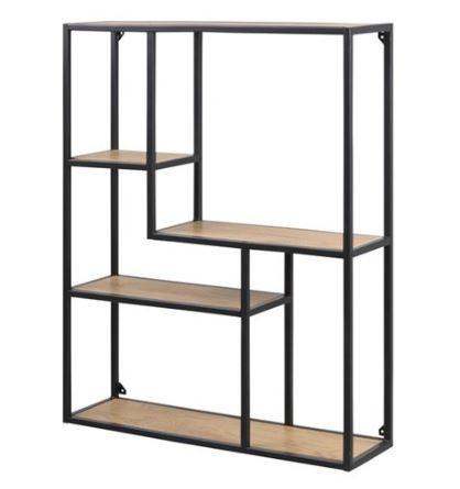 Descriere Etajera maro/neagra din lemn si metal pentru perete 91 cm Seaford Actona Company Material: MDF furniruit cu lemn de stejar, metal cu invelis de vopsea pulbere Proiectata cu un cadru simplu din metal negru si 3 rafturi cu aspect de stejar salbatic, aceasta etajera capteaza in mod natural atentia. Culorile contrastante si pozitia asimetrica a rafturilor fac ca obiectele de decor sa iasa mai usor in evidenta.
