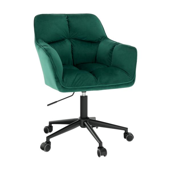 INFORMATII PRODUS Material: material textil Velvet/metal Rezistenta materialului: 80 000 Martindale Culoare: smarald/negru Dimensiuni (lxAxh): 49x59x62-99 cm Inaltimea reglabila a sezutului: 49-62 cm Adancime sezut: 44 cm Latime sezut: 39 cm Inaltime spatar: 43,5 cm Latime spatar: 54 cm Greutate maxima sustinuta: 120 kg Reglarea inaltimii sezutului Sezut rotativ Cu roti Se livreaza demontat VEZI MAI MULT