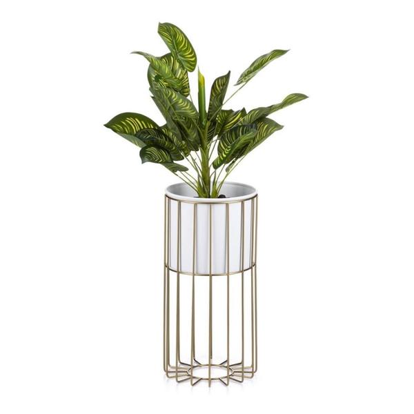 Suport de flori pentru iubitorii de plante. Avand un stil simplu si modern, produsul se potriveste in orice locuinta. Pentru expunerea plantelor. Fabricat din metal. Disponibil in culorile auriu si alb. Diametrul ghiveciului: 19 cm.