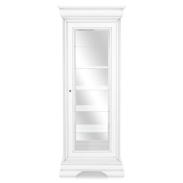 Informatii generale Articol Vitrina Dimensiuni L.76 x l.40 x H.193 cm Material Lemn masiv de fag, paltin si tei, MDF vopsit, sticla, oglinda Culoare Alb, finisaj antichizat Picioare 4 buc. H. 7 cm Material picioare PAL, MDF, culoare alb Usa Numar 1 buc., tip batant Material MDF, PAL, sticla Culoare Alb, finisaj antichizat Manere 1 buc. metal Culoare manere Bronz, finisaj antichizat Polita Numar 5 buc. - Sticla Dimensiuni L.62 x l.27 cm Culoare polita Transparent