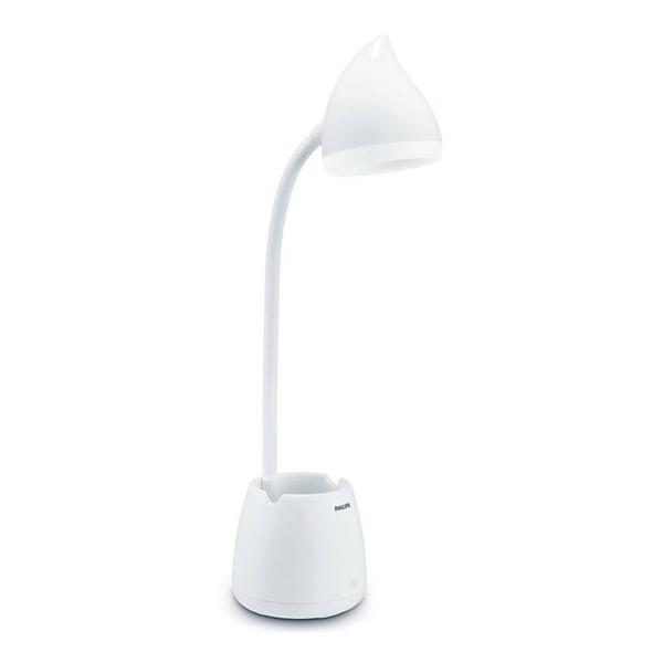 Lampa de masa LED cu suport de telefon mobil si suport de pixuri. Luminozitatea este reglabila, iar temperatura de culoare poate fi modificata prin atingerea butonului de pe corpul lampii. Temperatura de culoare: 2.700, 3.600 sau 5.000 K. Incarcabila prin USB (nu este inclus). Lampa indeplineste cerintele EyeComfort: este economica si nu oboseste ochii.