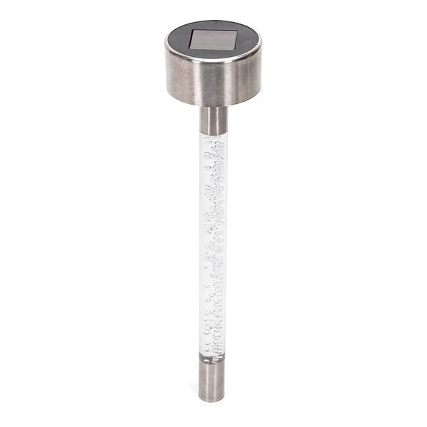 Lampa LED solara. Potrivita pentru iluminarea gradinilor si a aleilor. Datorita intensitatii reduse a luminii, produsul are mai degraba rol decorativ. Prevazuta cu senzor crepuscular care porneste automat lumina dupa lasarea intunericului. Grad de protectie: IP44. Timp de iluminare: 8-12 ore. Timp de incarcare: 4-6 ore. Dimensiunea panoului solar: 2,5 x 2,5 cm.