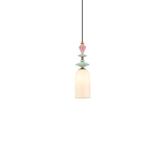 Lampa suspendata din metal,ceramica si sticla. Tip bec: 1 x E27/ MAX 40W. Diametru: 13 cm. Inaltime: 48/150 cm. Lungime cablu: 150 cm. Becul nu este inclus.