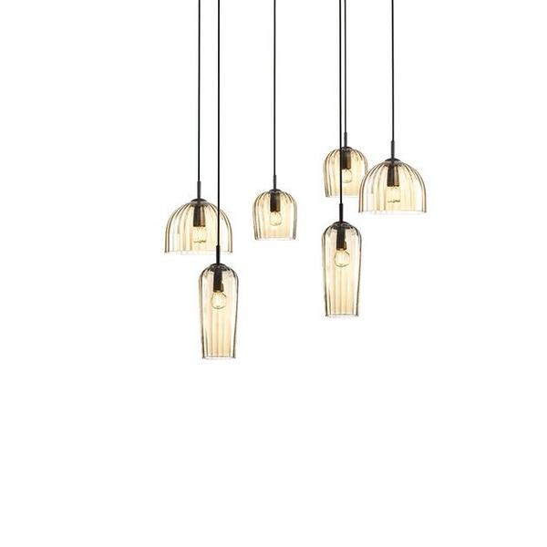 Lampa suspendata din metal si sticla. Tip bec: 6 x E14/ MAX 3 x 40W. Diametru: 90 cm. Inaltime: 110/150 cm. Lungime cablu: 150 cm. Becurile nu sunt incluse.