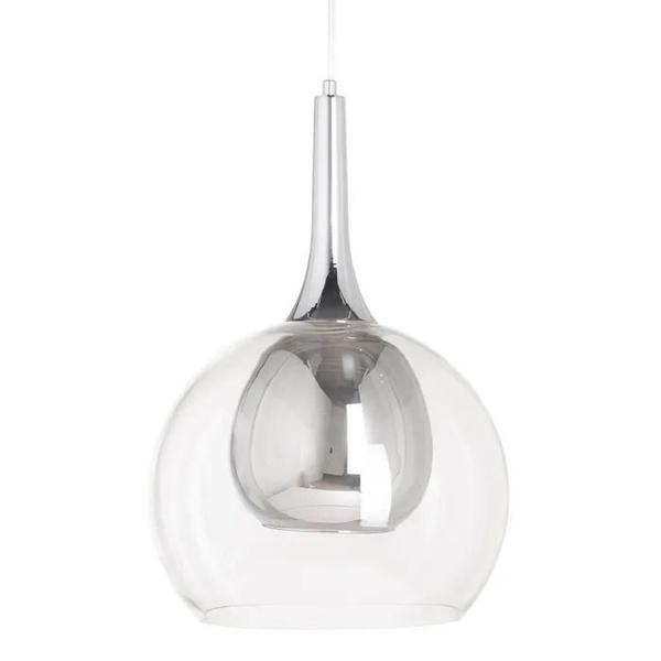 Lampa suspendata realizata din metal si sticla cu finisaj crom-transparent. Material: metal, sticla. Bec recomandat: 1x E27 max 40W Becurile nu sunt incluse in pret. Tensiune: 220-240V