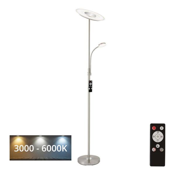 Lampadar LED modern. Potrivita pentru iluminarea camerei de zi si a dormitorului. Ofera lumina optima pentru munca, lectura si odihna. Poate fi controlata cu usurinta cu telecomanda (inclusa) sau prin intermediul a doua intrerupatoare separate pozitionate direct pe corpul produsului. Produsul are functii de reglare continua a luminozitatii, modificare a temperaturii luminii, lumina de veghe si temporizator (se aplica sursei de lumina principale). Temperatura luminii: 3.000-6.500 K. Produsul este prevazut cu un suport practic pentru telecomanda. Aspectul si functiile telecomenzii pot diferi in functie de lotul de corpuri de iluminat, intrucat producatorul depune eforturi continue in vederea imbunatatirii acesteia.