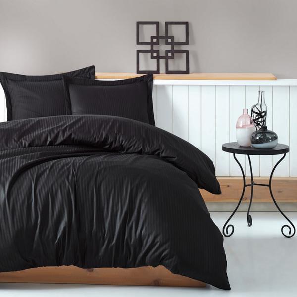 Descriere Lenjerie pat neagra din bumbac Stripe The Home Collection Material: 100% bumbac satinat Setul contine: \- 1 cearsaf pilota: 200x220 cm \- 1 cearsaf pat: 240x260 cm \- 2 fete de perna Oxford:...