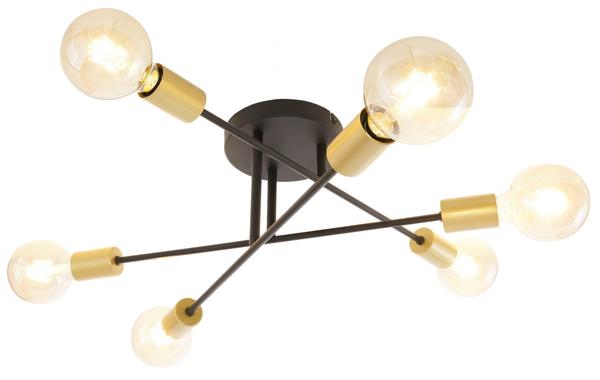 Descriere LEONIQUE Plafoniera JARLA neagra 58/21 cm Inaltime: 21 cm Lungime: 58 cm Material: metal Culoare: negru, auriu Brate reglabile flexibil / pivotante Clasa de protectie: IP20 Tensiune: 220-240 V Necesita 6 becuri E27, max. 40 Watt Becurile nu sunt incluse