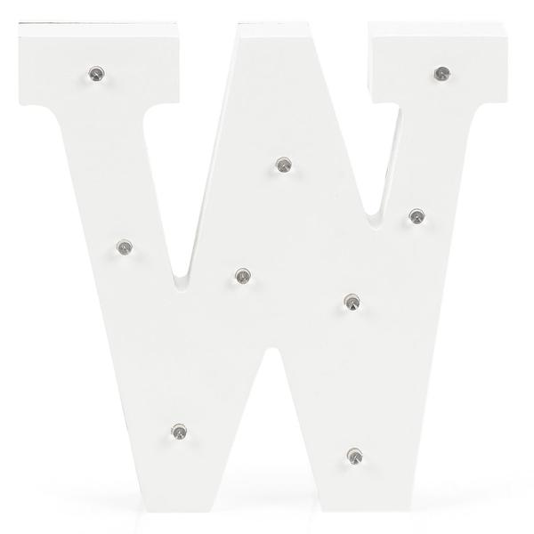 Decor luminos litera W pentru copii. Decorul luminos in forma literei W este optiunea ideala pentru a adauga camerei un plus de personalitate si pentru a o amenaja pe aceasta in functie de preferinte. Acesta este o piesa speciala, care se poare integra cu usurinta in decorul camerei voastre. Dimensiuni: L. 16 x l. 2 x H. 16 cm. Material: mdf. Culoare: alb.