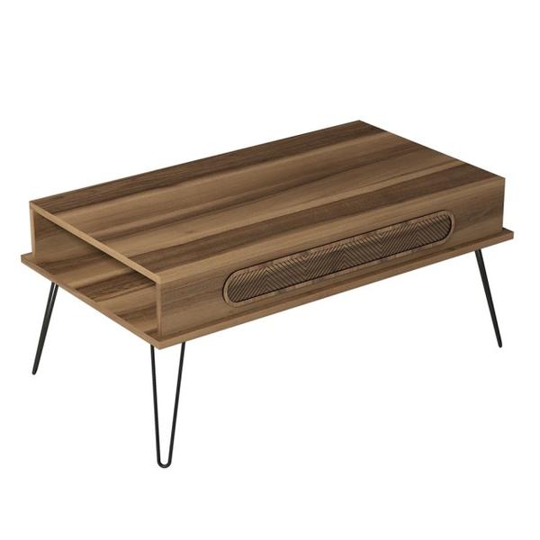 Detalii Categorii Mese cafea Greutate 19 Brand The Home Collection Spatiu depozitare Da Material blat Melamina PAL Material cadru Metal Culoare Maro Latime 105 Adancime 56 Inaltime 45.8 Forma Dreptunghiular Numar in set 1 buc