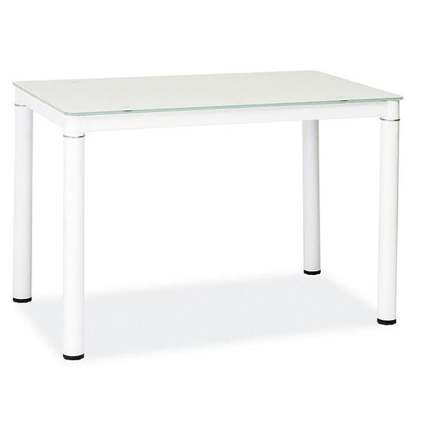 Descriere Masa dining alba din metal 60x100 cm Galant The Home Collection Material: sticla temperata si metal Masa Galant este o propunere pentru persoanele care apreciaza un stil modern simplu si estetic. Blatul mesei este realizat din sticla dreptunghiulara cu colturi rotunjite. Baza este un cadru metalic solid.