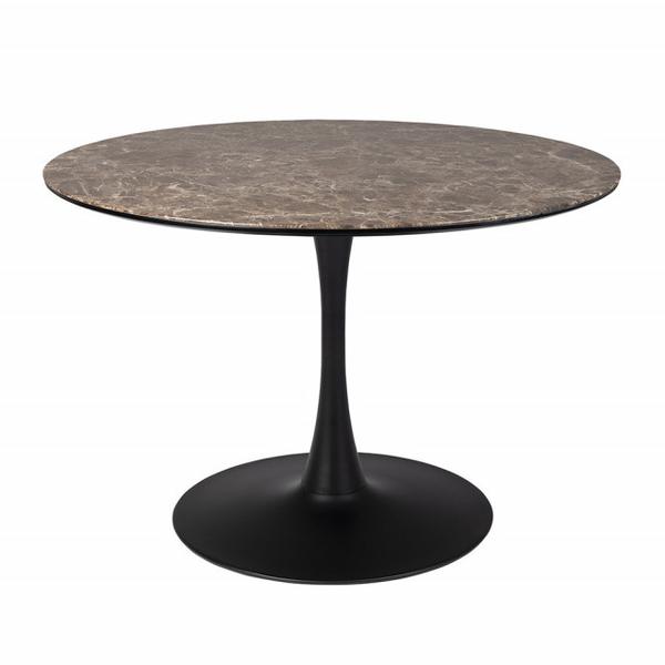 Descriere Masa dining maro/neagra din lemn si metal 110 cm Maru The Home Collection Material: blat din MDF cu aspect de marmura, picioare din fier Sarcina maxima: 150 kg Masa dining maro/neagra din le...