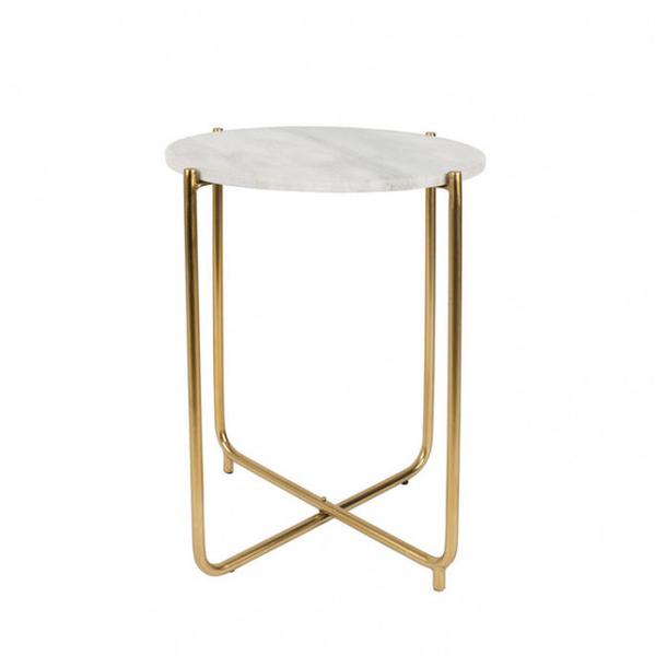 Descriere Masa laterala alba/aurie din marmura si metal 45 cm Timpa Marble The Home Collection Material: marmura si fier Sarcina maxima: 10 kg Produsul este unicat datorita marmurei naturale, astfel i...