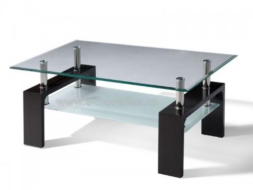 Masute Cafea Vento Se poate spune ca o masuta de cafea este indispensabila in living sau sufragerie. Mesele si masutele de cafea trebuiesc asortate la mobila de living prin mentinerea liniei moderne sau clasice. Masutele Vento sunt construite cu un blat de sticla securizata de 10 mm iar picioarele sunt produse din MDF de mare densitate. Masuta poate fi comandata pe wenge sau pe nuc pentru a obtine ambientul potrivit cu mobila de living.