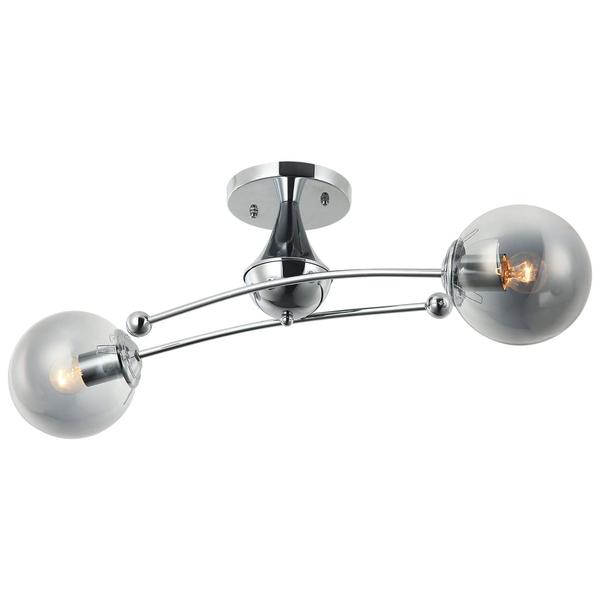 Informatii generale Tip articol Plafoniera Dimensiuni L.72,5 x l.15 x H.26,5 cm Material Metal, Sticla Numar surse de lumina 2 buc. - tip soclu E27 (max. 40W) - becul nu este inclus Grad protectie IP IP20 Baza Material Metal Finisaj Lucios Ornament Ornament inclus Da Material ornament Metal Abajur Material Sticla Diametru abajur 15 cm