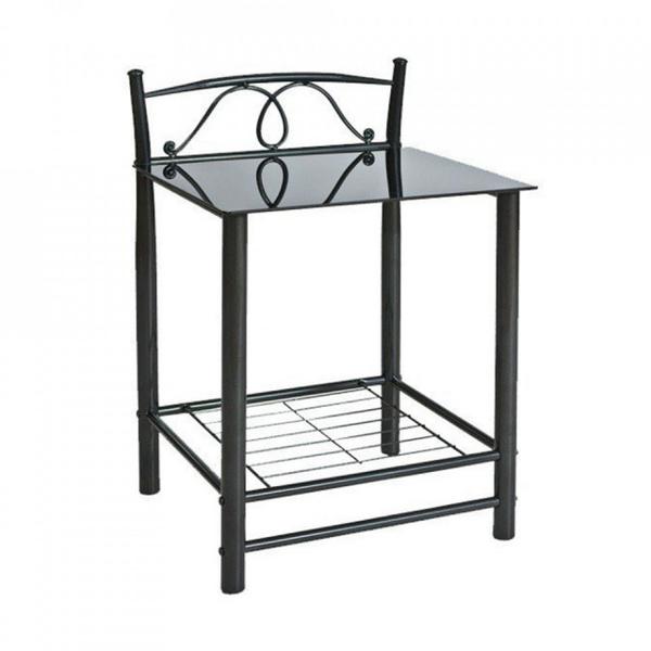 Descriere Noptiera neagra din metal Ettes The Home Collection Material: sticla si metal Noptiera Ettes este o piesa mica de mobilier, dar foarte utila in dormitor, puteti pune o carte sau o lampa de n...