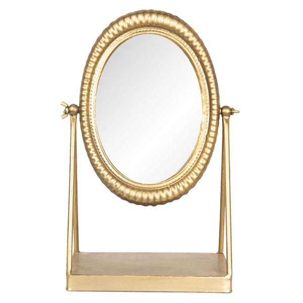 Descriere Oglinda aurie cu stativ h35 cm Oglinda aurie cu stativ H35 cm Dimensiuni: 23 * 13 * 35 cm Culoare: maro Material: metal / sticla