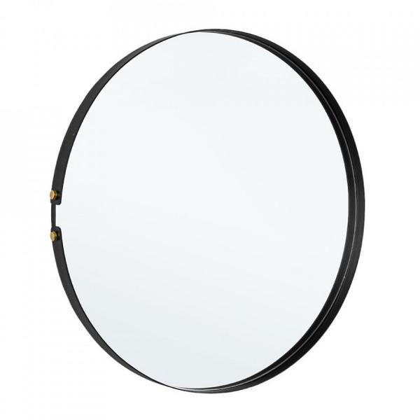 Descriere Oglinda rotunda neagra din otel 66 cm Zeina Bizzotto Dimensiuni: \- Diametru: 66 cm \- Inaltime: 4 cm Material: otel si sticla