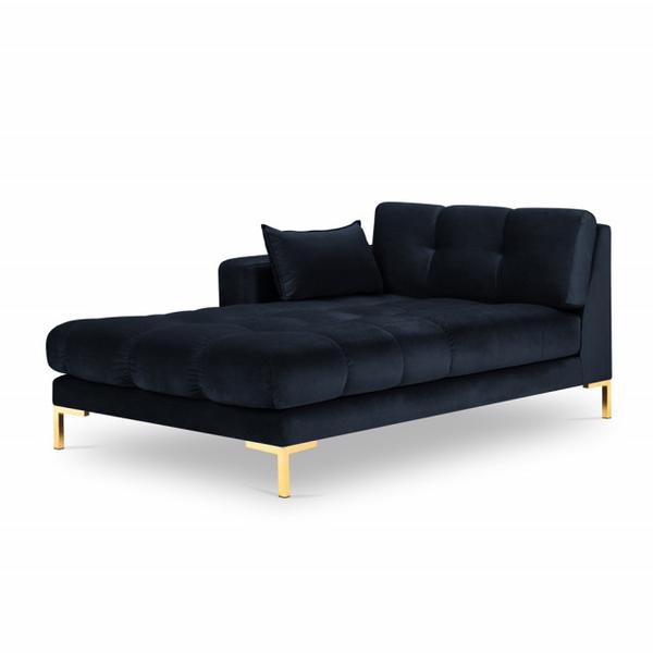 Descriere Pat de zi albastru royal/auriu din catifea si metal 185 cm Mamaia Right Besolux Dimensiuni: \- Lungime: 185 cm \- Latime: 102 cm \- Inaltime: 75 cm \- Inaltime sezut: 41 cm Material: catifea...