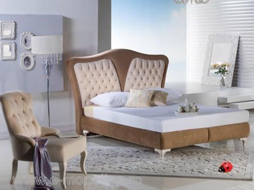 Paturi Dormitor Elegante Diamond Un pat elegant pentru dormitoare deosebite disponibil pe dimensiunile 160 / 200 cm si 180 x 200 cm ce se remarca printr- un aspect impunator ce contribuie substantial la amenajarea dormitoarelor pe stil clasic dar cu tendinte moderne si creeaza un ambient deosebit si luxos. Patul Diamond este un pat tapitat integral ce se remarca atat prin eleganta dar si prin robustete, rezistenta sa in timp. Paturile Diamond beneficiaza de o constructie robusta, consolidata de o structura metalica vopsita in camp electrostatic. Utilitatea sporita este data de lada pentru lenjerie ce ofera un volum pentru depozitare foarte generos. Accesul catre spatiul de depozitare este facilitat de folosirea unui sistem hidraulic format din 4 pistoane pe gaz prevazute cu sistem de siguranta impotriva coborarilor accidentale. Patul poate fi prevazut cu saltele independente si utilizat pentru doi copii sau tineri ori poate fi prevazut cu o saltea pe ambele somiere caz in care este un pat matrimonial deosebit de elegant, confortabil dar mai ales util. Pentru reusita amenajarii unui dormitor de vis va recomandam completarea mobilierului de dormitor cu fotoliul berjer din aceeasi serie, un fotoliu de o calitate deosebita cu un design pe masura. Pentru o buna ventilare baza de pat este prevazuta cu picioare de 13 cm inaltime. Picioarele permit si aspirarea spatiului de sub pat. Inaltimea utila a lazii pentru lenjerie este de 23 cm iar inaltimea totala, la nivelul saltelei este de 36 cm. Inaltimea patului plus saltea aduce corpul in pozitia de somn la inaltimea optima din punct de vedere termic. Este cunoscut faptul ca aerul cald se ridica iar jos la nivelul planseului de beton temperatura este mai scazuta, implicit confortul organismului pe timpul somnului lasa de dorit. In acest fel patul Diamond ofera eleganta, fiabilitate, utilitate si completeaza cu un confort de invidiat. Paturile de dormitor din seria Diamond sunt disponibile pe comanda atat in varianta pat tapitat stofa, pe o stofa plusata foarte eleganta - design clasic, dar si in varianta pat tapitat piele ecologica - design modern. Seria Paturi de dormitor Diamond este disponibila cu Livrare in Toata Tara la preturi foarte avantajoase sau transport gratuit in Bucuresti.